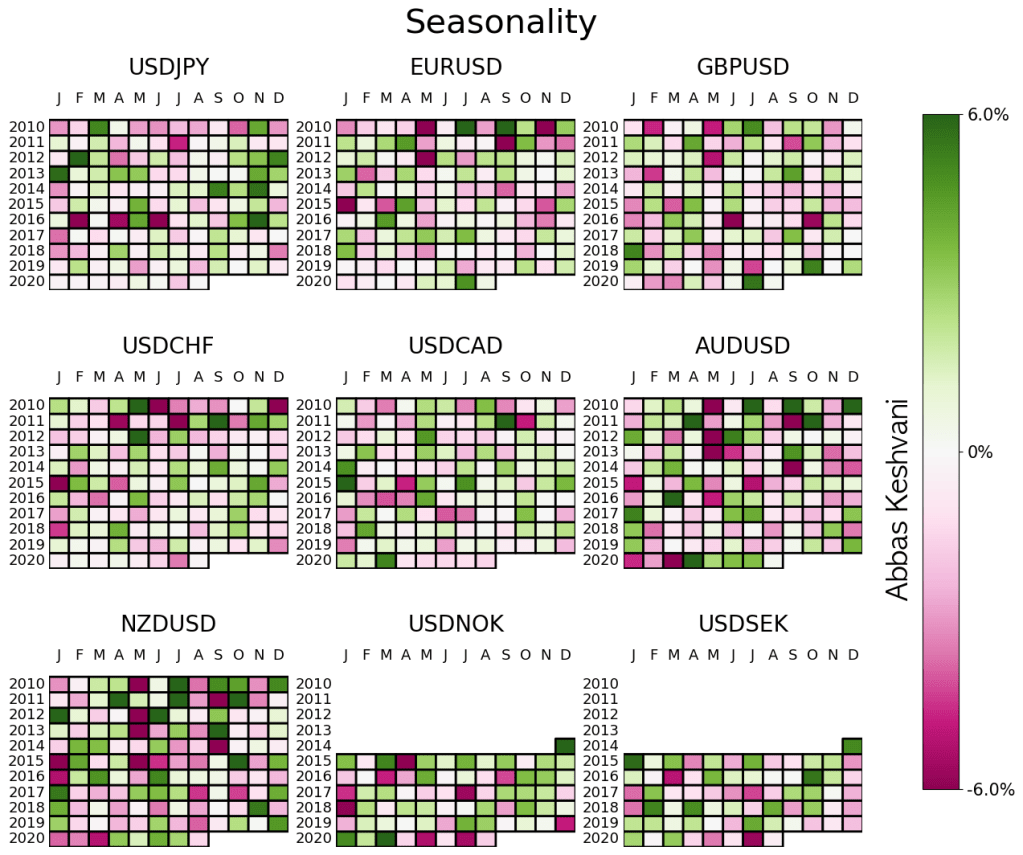 Currency traders pay a lot of attention to seasonality. “NZDUSD tends to sell-off in August” is often cited as an argument (combined with other considerations, of course) to either short the pair or at least not go long.